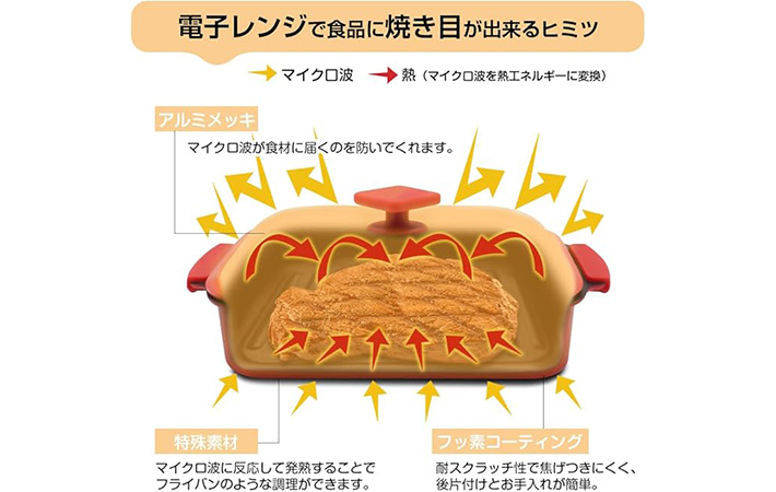 また、電子レンジから発せられる特殊な電磁波を熱エネルギーに変換できる仕組みを採用。