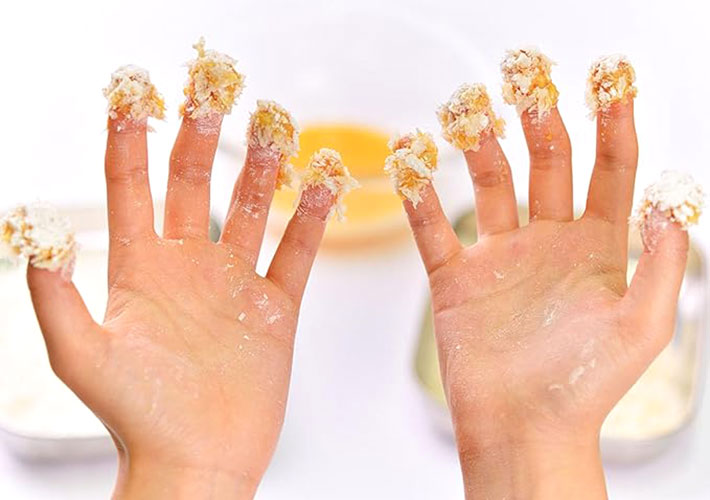 衣や卵液につける揚げ物調理でも手がベタベタにならない!