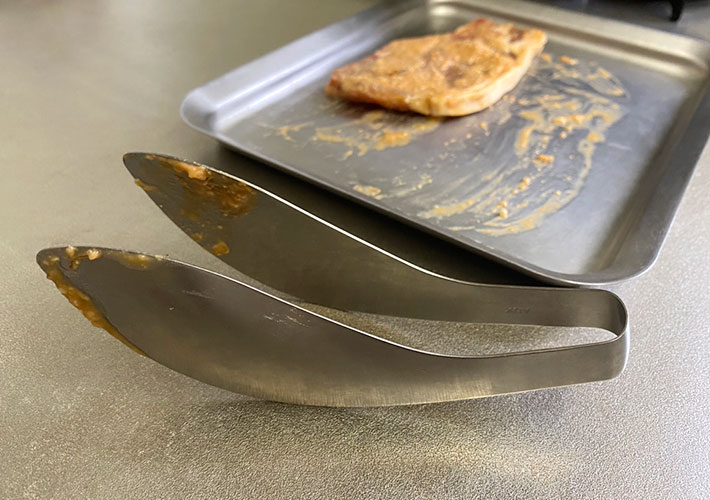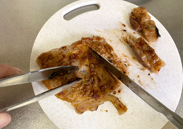 また、ソテーした肉や魚を押さえて、包丁でカットする時にも便利ですよ。