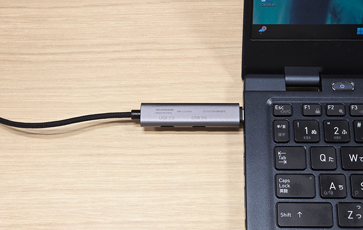 ノートパソコンのバッテリーが十分にある時は、電源に接続せずシンプルなUSBハブとして使えます。