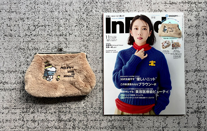 毎号好評の『InRed』の付録。今回の『SNOOPY刺繍入りがま口ファーポーチ』も期待を裏切らない仕上がりでした。