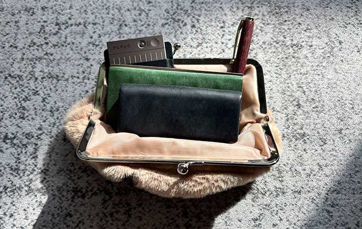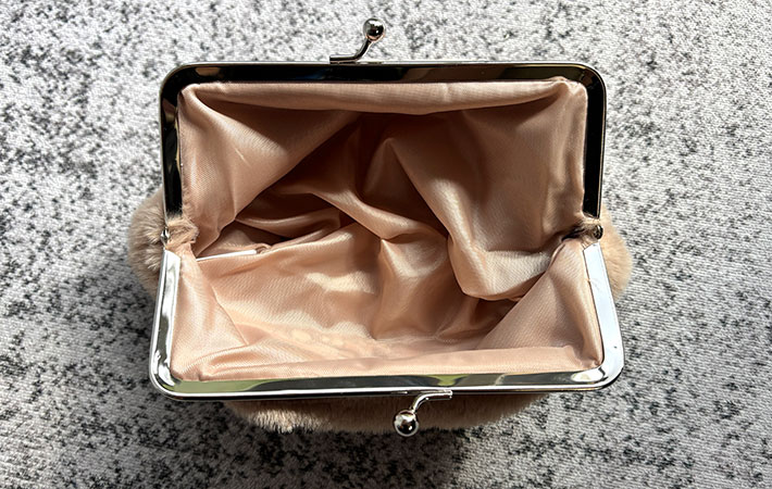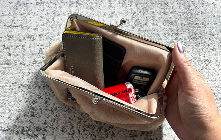 がま口でさっと開け閉めできるので、出し入れもスムーズです。