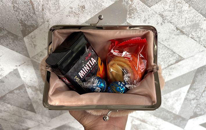 ちょっとしたおやつを入れておけば、仕事の休憩時間や移動中にさっとつまめます。