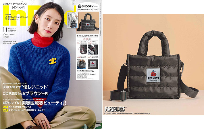 同時発売の『InRed』11月号付録はスヌーピーの『2WAY キルティングバッグ』。こちらもチェック!