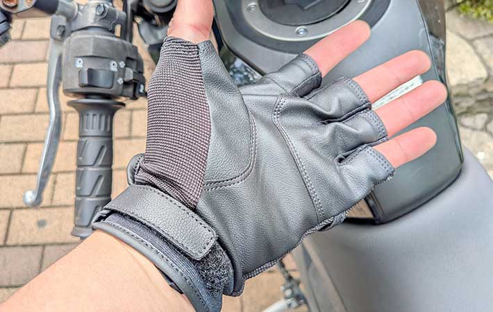 着用してハンドルを握ってみると、合成皮革なので柔らかく、滑るような感覚もなくしっかりとグリップ。
