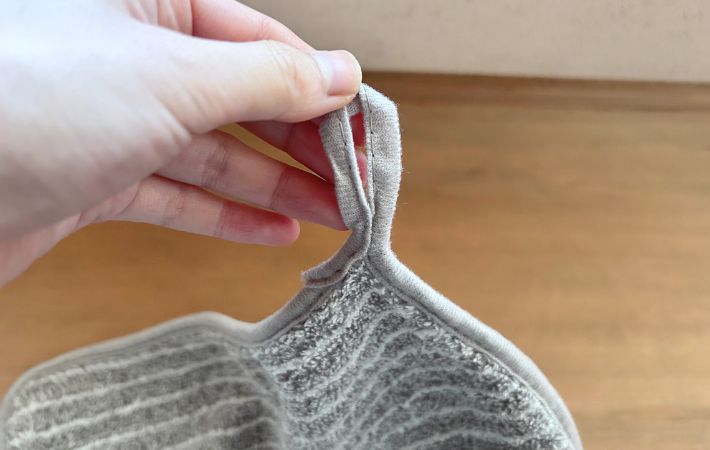 洗った後はこの吊り下げループを使ってサッと吊るせばOK。収納場所に困ることもなく、いつでも手に取りやすい状態をキープできます。