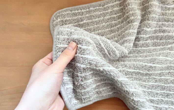 手に取ると、ふんわり程よい厚みとやわらかさがありながらもしっかりとした織り目を感じ、耐久性に期待できます。