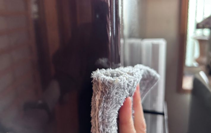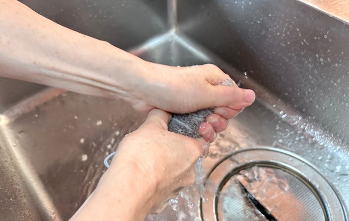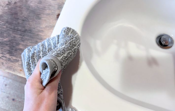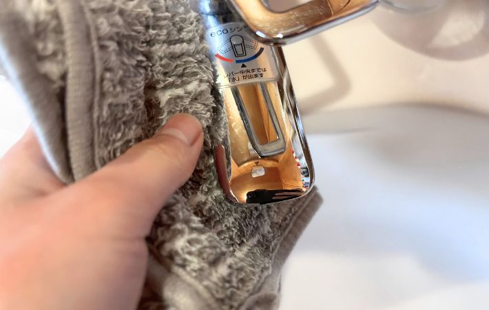 水でサッと濡らしてぎゅっと絞り、汚れが気になる箇所を拭くだけ。