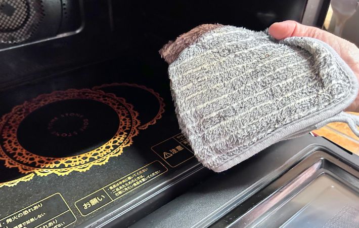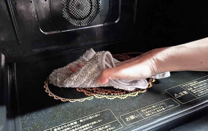 食品が加熱されて飛び散った電子レンジの中の汚れも、軽く拭くだけでGOOD。
