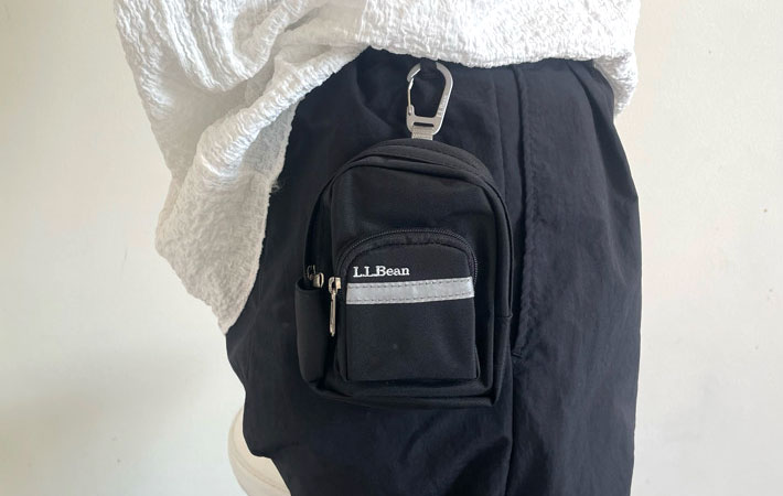 さらに、ベルトループにつけてちょっとしたお出かけ用ミニバッグとして使うのもおすすめ。
