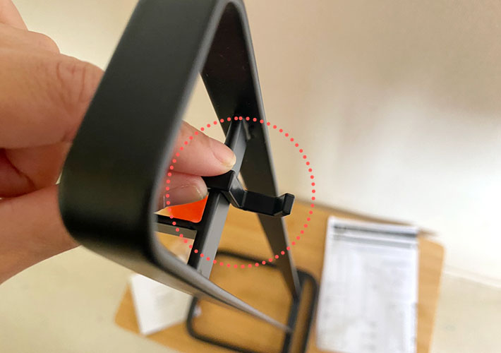付属のフックも忘れずに取りつけてくださいね。写真のようにはめ込むだけです。