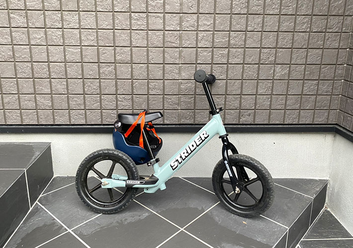 キッズバイクにもさまざまな種類がありますが、我が家で愛用しているのは、12インチの『ストライダー』のスポーツモデル。