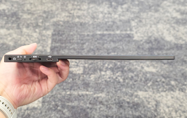 横から見ると非常にスリムで、重量も570gと軽量
