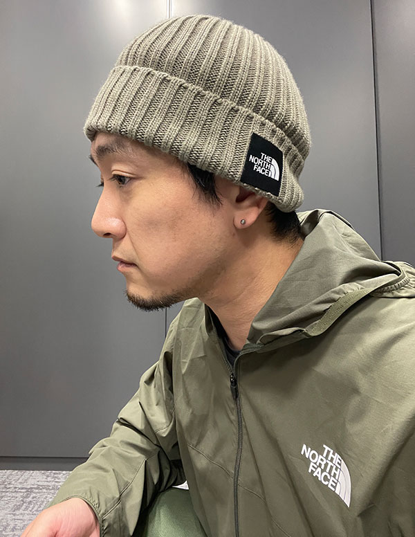 また、ノースフェイスのジャケットということで、同ブランドが販売している『カプッチョリッド』という薄手のニット帽とも相性抜群。