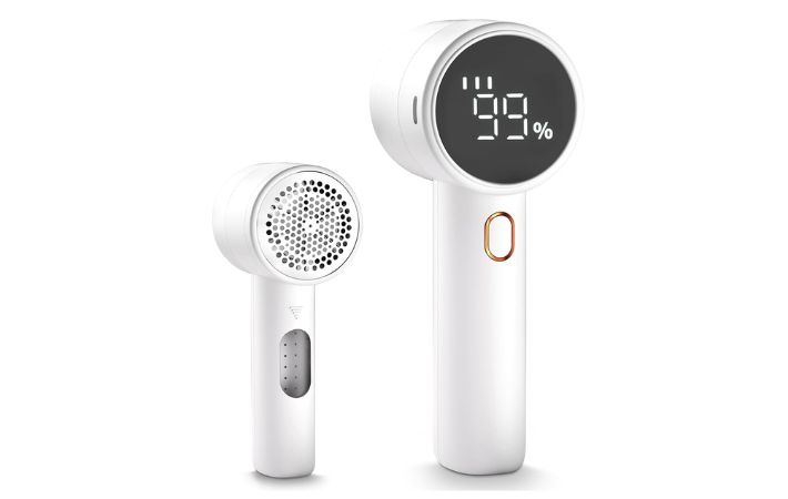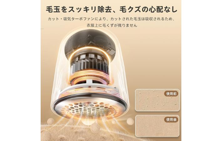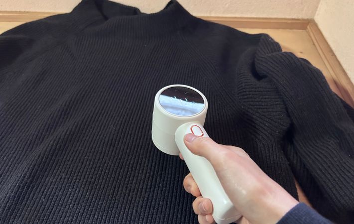 電動タイプでスピーディーに毛玉を除去できるという商品。誰でも簡単にお気に入りの服を蘇らせることができます。