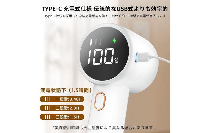 使用時間:低3.5時間 中2.3時間 高1.5時間