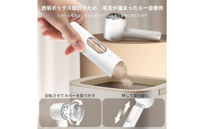 透明だから毛玉がどれくらい溜まったのかがひと目で分かり、水洗いできるのでいつでも清潔に使用できます。