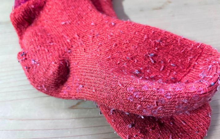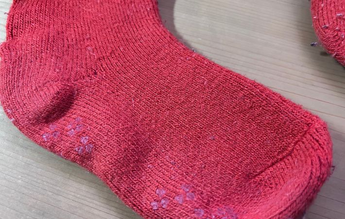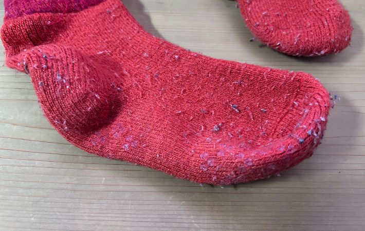 さらにお気に入りの靴下もつま先やかかとに大きな毛玉がたっくさん。