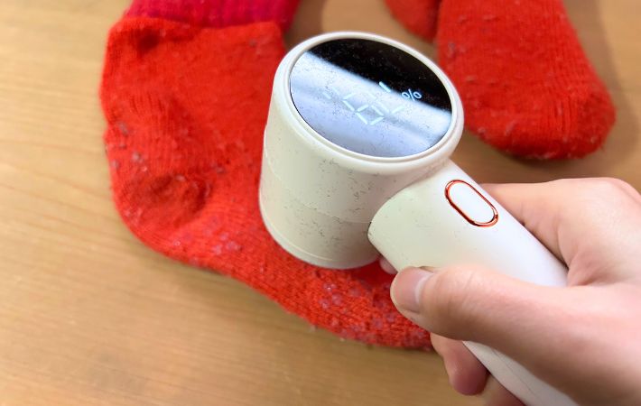 「もう着られない」と思ったニットが! 話題の電動毛玉取りがすごすぎた 新着 By - shio 更新:2025-10-24 ※本記事はUPDATEが独自に制作したコンテンツです。また、本記事を経由して商品の購入が発生した場合に、ECサイト等から送客手数料を受領することがあります。 そろそろ衣替えの季節。タンスやクローゼットの奥からお気に入りのニットを取り出したら……「あれれ、毛玉だらけ!?」 去年、あんなに気に入って大切に着ていたのに、首元や袖、裾がくたびれて見えると着る気が失せてしまいます。 でも、処分するのはもったいない。そこで頼りになるのが、『FrSara毛玉取り 電動 毛玉クリーナー(以下、FrSara毛玉取り)』です。 Amazonで見る 楽天市場で見る Yahoo!で見る 電動タイプでスピーディーに毛玉を除去できるという商品。誰でも簡単にお気に入りの服を蘇らせることができます。 「今年も気持ちよく着たい!」そんな願いを叶えてくれる『FrSara毛玉取り』の魅力をご紹介します! 目次 1. 『FrSara毛玉取り』の特徴や使い方をチェック2. 実際に使ってみた!3. 気になったことも4. まとめ 『FrSara毛玉取り』の特徴や使い方をチェック サイズ(約):幅6cmx高さ16cm×奥行き6.4cm 質量(約):195g 充電方式:Type-C 使用時間:低3.5時間 中2.3時間 高1.5時間 ※上記使用時間は、周囲温度によって異なる場合があります。 本体はマットなホワイトでスタイリッシュなデザイン。 いかにも「家電です!」という感じがなく、むしろ美容機器のような洗練されたルックスです。 手に取るとコンパクトで軽く、女性の手でも持ちやすいサイズ感。 握りやすく、長時間使っても疲れない印象です。 筆者 旅行先にも持って行けそう! 『FrSara毛玉取り』は、6枚刃を高速回転させることで不要な毛玉をカット。 刃の回転と同時に強力な吸引力を発揮し、スピーディーかつきれいな仕上がりを実現します。 さらに、この毛玉クリーナーのすごいところは衣類を傷めずにふんわりカットできること。 刃の回転スピードを三段階で調整することが可能で、薄手の靴下やニットから厚手のセーター、布団カバーまで素材に合わせて使い分けられます。 操作もスイッチ1つで分かりやすく、段階モードやバッテリー残量をひと目で確認できる大画面のLED液晶ディスプレイを搭載。 充電は『USB Type-C』に対応しているので、モバイルバッテリーやパソコンなど幅広い方法で簡単に充電できます。 満タンになったら自動的に充電を停止してくれるので、出かけている時や寝ている時に効率的に充電できます。 また、安全性についてよく考えられているところもこの毛玉クリーナーの長所。 カバーが取り外された状態やきちんと取りつけられていない場合は、スイッチをオンにしても起動しないので、小さなお子さんやペットがいるご家庭でも安心して使えます。 そして大容量で取り外し簡単なダストボックスを搭載しているのも魅力でしょう。 透明だから毛玉がどれくらい溜まったのかがひと目で分かり、水洗いできるのでいつでも清潔に使用できます。 小回りがきく専用ブラシがついてくるのも嬉しいポイント。お手入れしにくい刃や細かい部分にしっかり入りこみ、汚れをかき出してくれます。 これまで古くなった歯ブラシやティッシュを使ってチマチマ掃除していた人も多いでしょう。そんな手間から解放されますよ。 実際に使ってみた! 最近、一気に寒くなったので「衣替えをしてしまおう!」とクローゼットの中を整理することに。 すると去年、気に入って着用していたニットのワンピースを発見。 「今年もたくさんお世話になるぞ〜」と思い、引っ張り出した瞬間、目に飛び込んできたのは無数の毛玉でした。 筆者 え、こんなにできてたっけ……? さらにお気に入りの靴下もつま先やかかとに大きな毛玉がたっくさん。 着る気も履く気も失せてしまいました。 そこで『FrSara毛玉取り』の出番。 ドキドキしながらスイッチを入れると、ウィ〜ンという機械音とともにディスプレイにバッテリー残量が表示されます。 3段階ある刃の回転スピードはスイッチを押すたびにレベルが上がる仕組み。 まずは二段階目の中速モードでニットワンピの毛玉をとっていきます。 最初は本当にドキドキ…。実は以前、別の毛玉クリーナーを使った時、セーターに大きな穴を開けてしまったんです。 そのトラウマもあって、緊張しつつ毛玉が目立つ箇所にそっと滑らせてみると…。 毛玉がみるみる消えていくではありませんか! その光景に思わず「わぁ!」と声が出てしまった筆者。 三段階目の高速モードに切り替えると、一気にパワー全開! 広い面や袖部分があっという間にキレイになり、見ているだけで爽快です。 最初は慎重に滑らせていた手もだんだんテンポよく動かせるようになり、気づけば夢中で毛玉をとっていました。 筆者 平らな場所に衣類を置いて、クリーナーを上下に動かすとやりやすいです。 作業はあっという間に完了。お気に入りのワンピースがまるで新品のように生き返