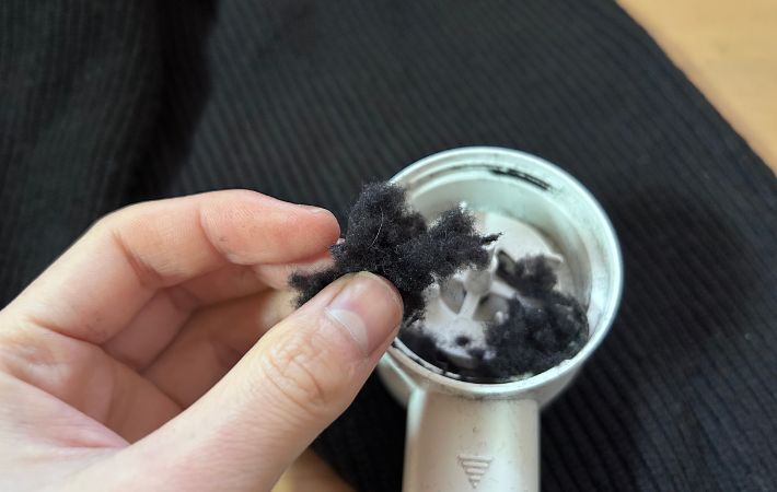 最初は慎重に滑らせていた手もだんだんテンポよく動かせるようになり、気づけば夢中で毛玉をとっていました。