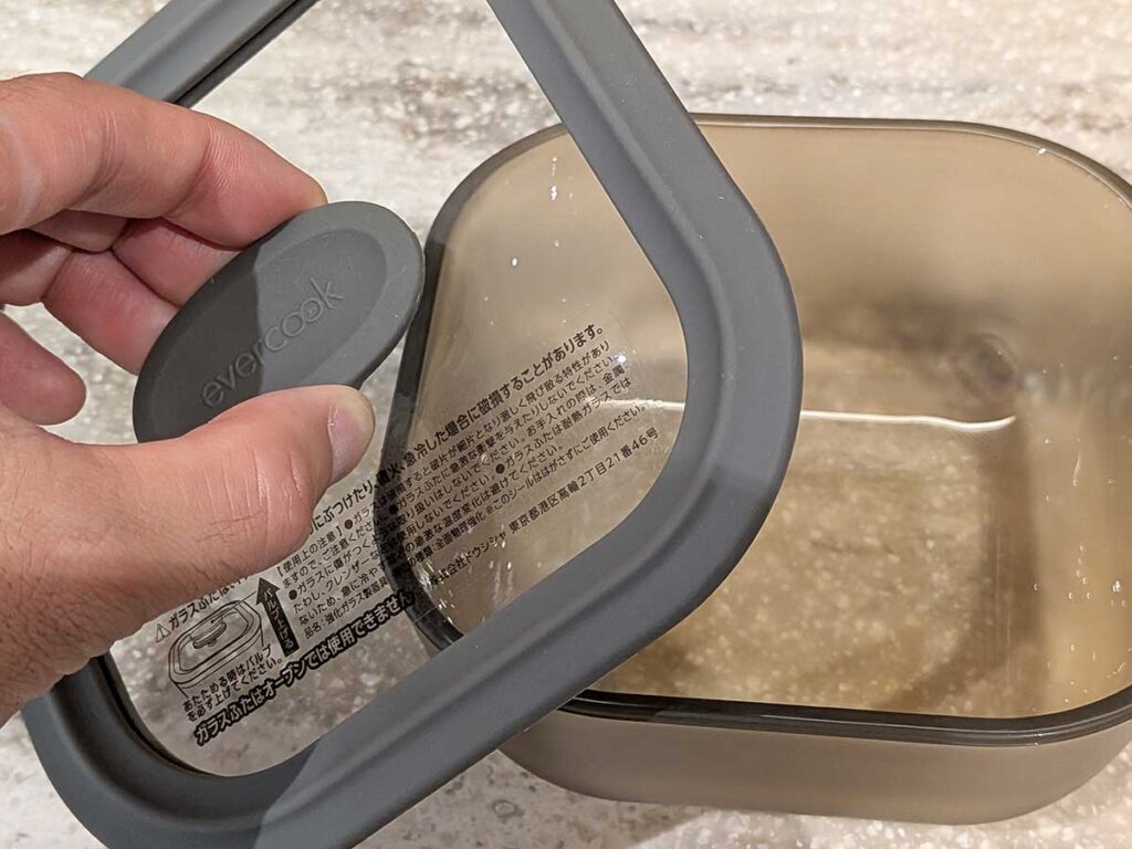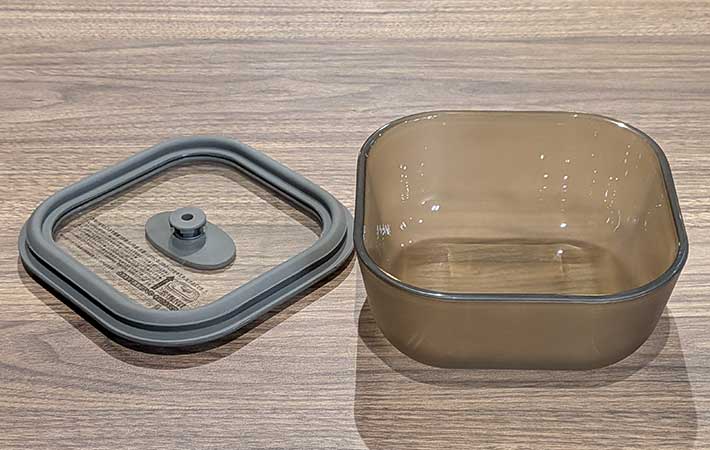 実際、バルブを下げるとフタは外しにくくなるほど密閉。液体などが漏れないほどではありませんが、保存容器としては十分です。