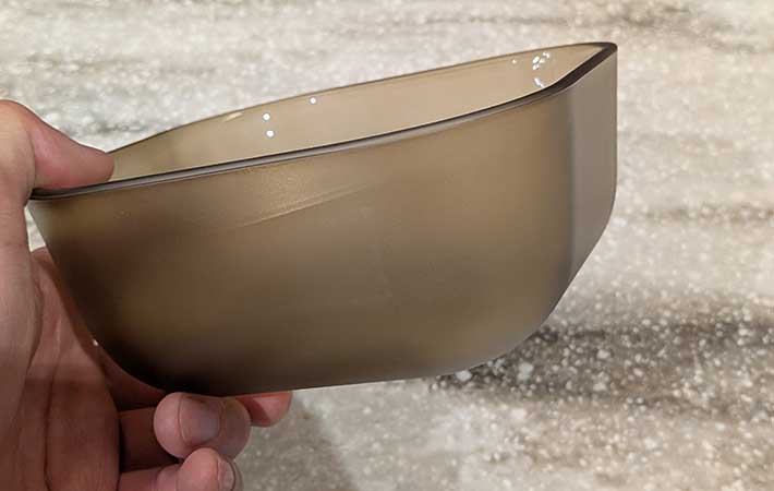 ガラス製で厚みもあるため、プラスチック製のものよりも重たく感じます。