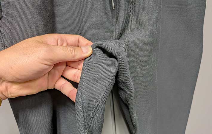 履き心地や保温性など、機能性については文句なしのリバースパンツですが、最初だけ気になることがありました。