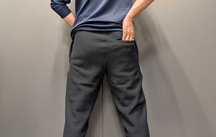 リバースパンツはS~XLまでサイズを展開しており、身長178cm、体重約70kgの筆者は一番大きなXLを着用してみました。