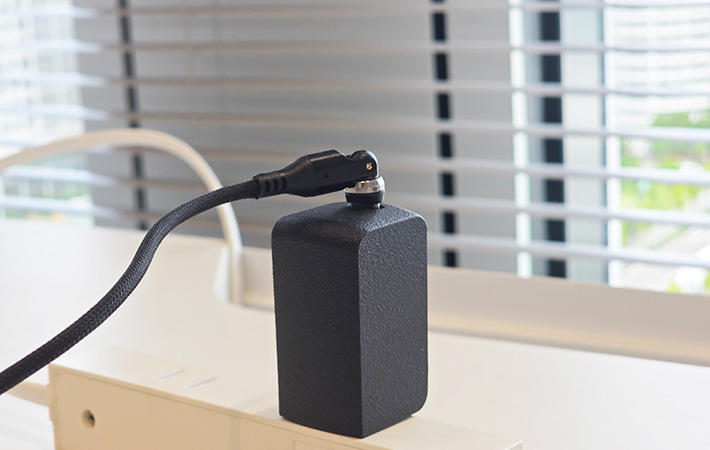 ケーブルが横に飛び出さず本体に沿うように伸びていくので、デスク上がスッキリします!