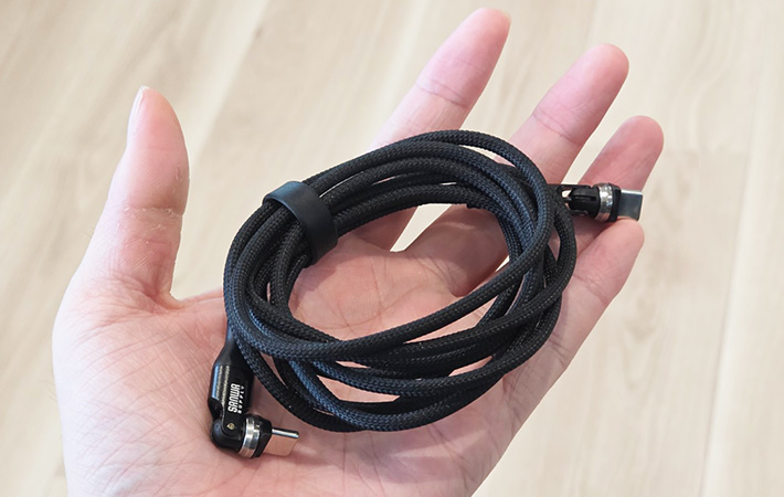 ちなみに、ケーブルの長さは1.8mです。やや長めですが、ケーブルをまとめるのに便利なバンドが付属しているので、カバンやポーチの中で絡まるのを防ぎながら持ち運べます。