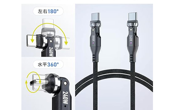 さらに嬉しいポイントが、この可動式のコネクタがケーブルの両端に採用されていること。