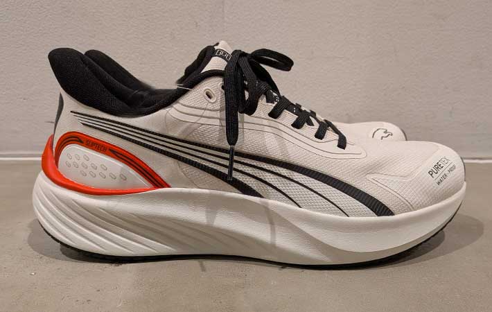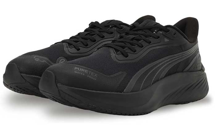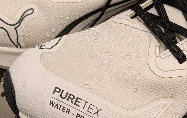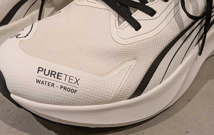 アッパーには、通気性に優れたクローズドメッシュ素材とプーマ独自の耐水機能 『PURETEX』を搭載。
