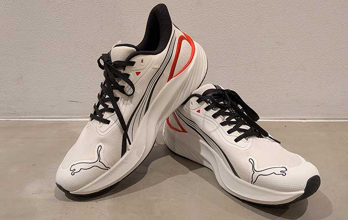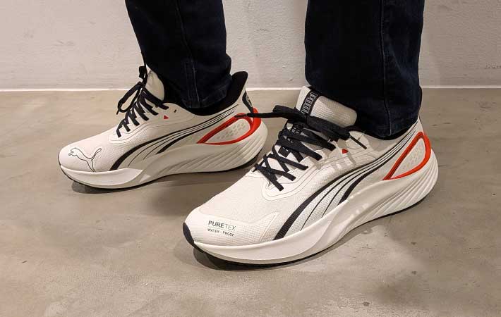 脱ぎ履きがしやすいシューズを探していた筆者の目に留まったのが、『PUMA(プーマ)』の『ユニセックス パウンス ライト PTX 防水 イーズイン ランニングシューズ(以下、イーズインシューズ)』です。