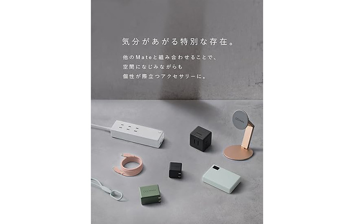 さらに、ほかの『CIO Mate』シリーズの充電器やケーブルも同じカラー展開なので、充電環境の色を統一することもできますよ。