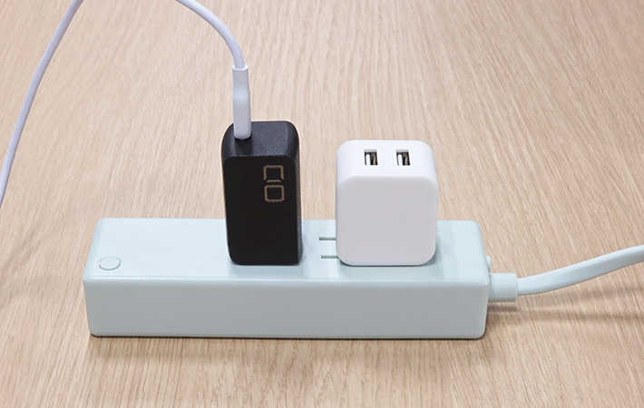ただし、差し込み口同士の間隔がやや近めなので、大きめの充電器を使う場合は隣同士が干渉してしまうこともあります。