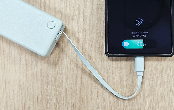内蔵ケーブルでスマホを急速充電している様子