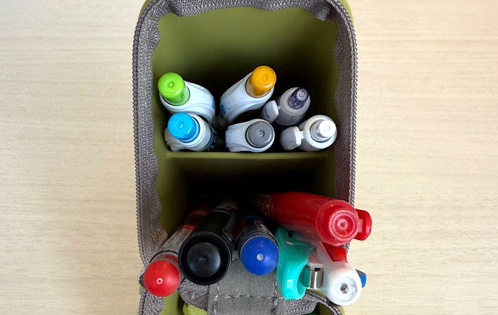いろいろな種類のペンを入れていても、目当てのペンを一目瞭然で見つけられるので、勉強や仕事で複数のペンを使う人はとても使いやすいと思います。
