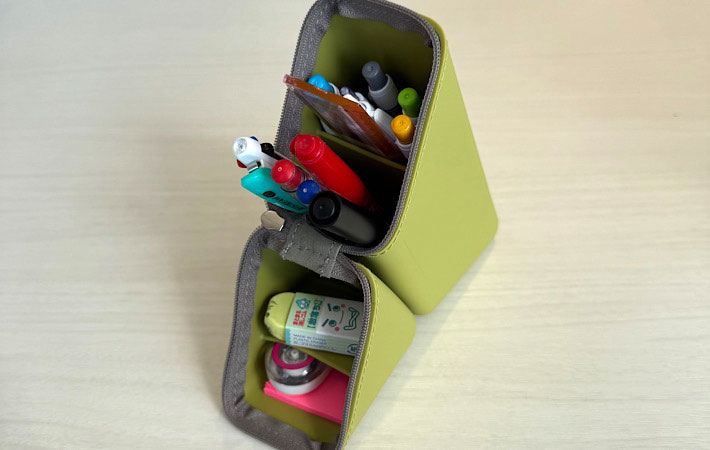 デスク上の作業効率を上げたい人、持ち運びの便利さを重視したい人にとって、おすすめのペンケースです。