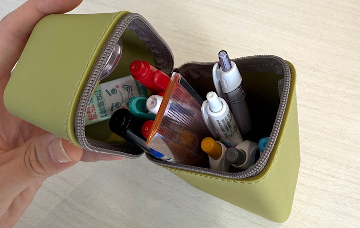 ほどよい弾力があるので、持ち運びの時に中の文房具を守ってくれる安心感もありますよ。