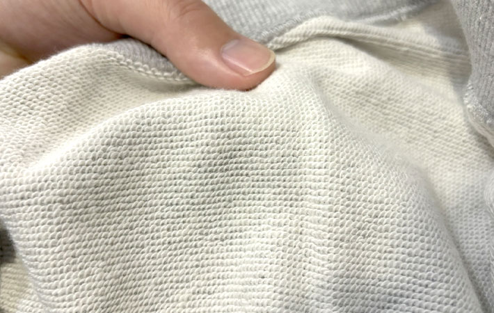 そんななか『C3-W201』はリバースウィーブではなく通常の製法で、タオル素材のような肌触りが特徴的なフレンチテリーを使用しています。
