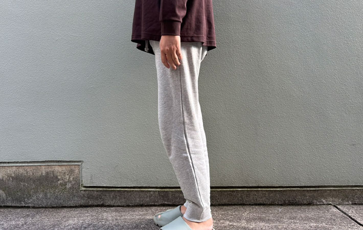生地の厚みと動きやすさを両立させているリバースウィーブに対し、『C3-W201』はスッと肌に馴染む着心地が快適で、何度かはくうちによさが分かる質感となっています。