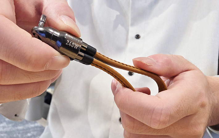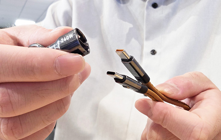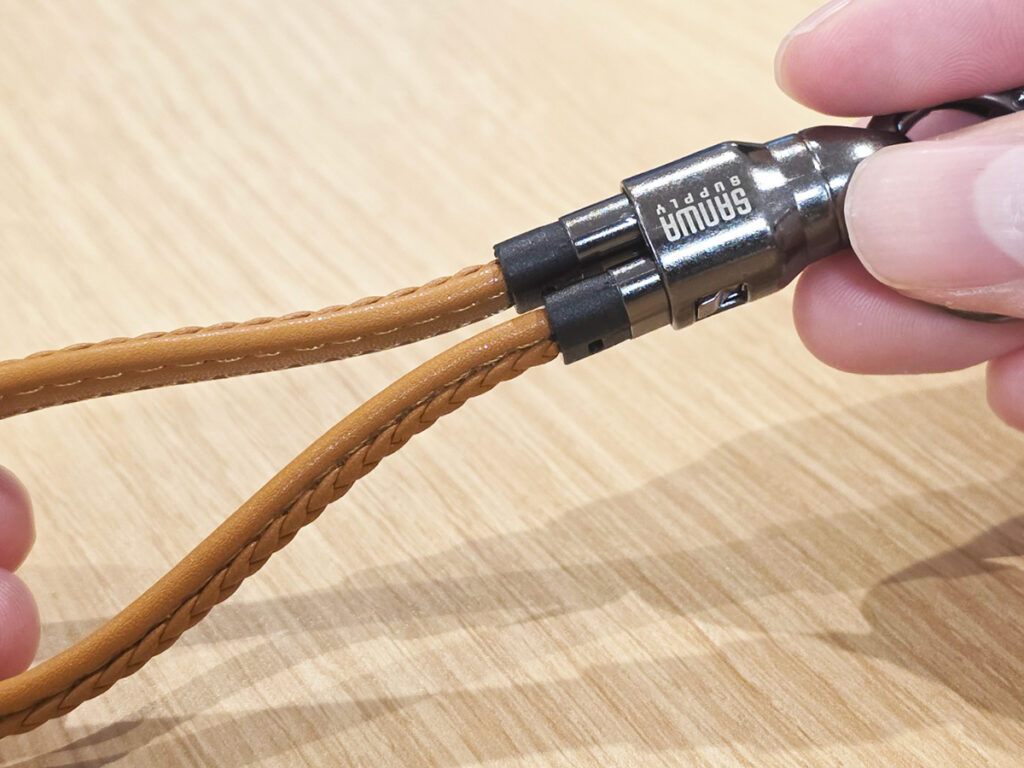 充電が終わったら、ケーブルをホルダーに戻しましょう。両端のUSB-Cコネクタをそろえてホルダーに差し込むと、カチッという音が鳴って固定されます。