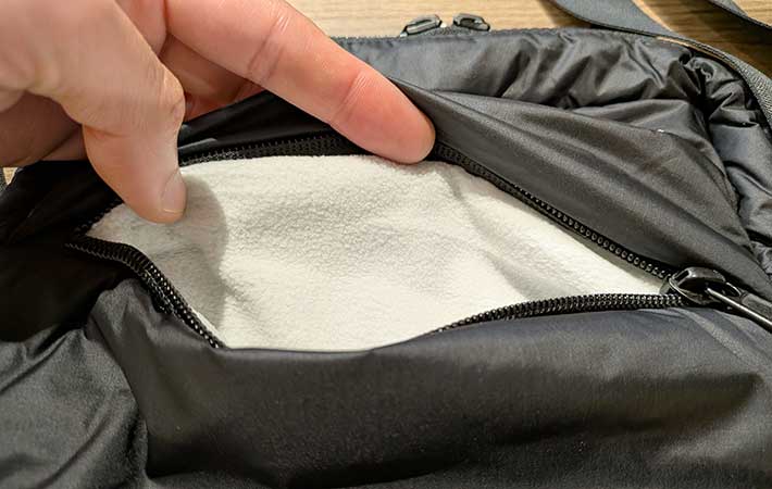フロントポケットはフリースになっており、多少のクッション性があります。