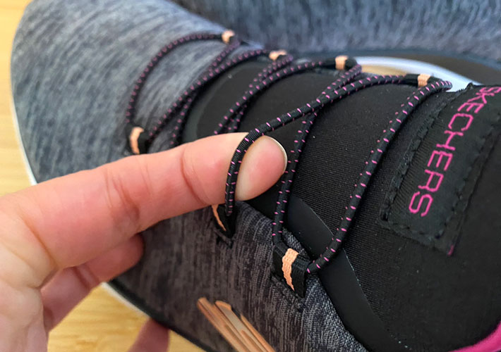 また、靴ひもの代わりにストレッチレースが固定されているので、毎回結び直さなくていいのも快適。
