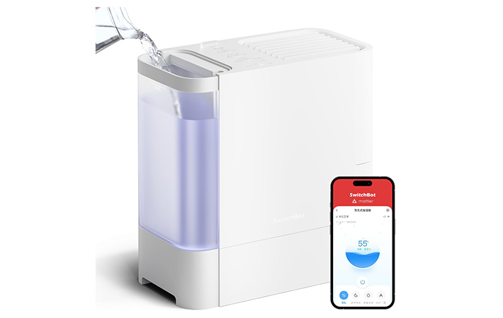 電源のオン・オフや加湿量の調節などは、スマホから操作可能。外出時に電源を切り忘れても、外出先からスマホでオフにできますよ。