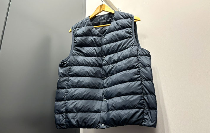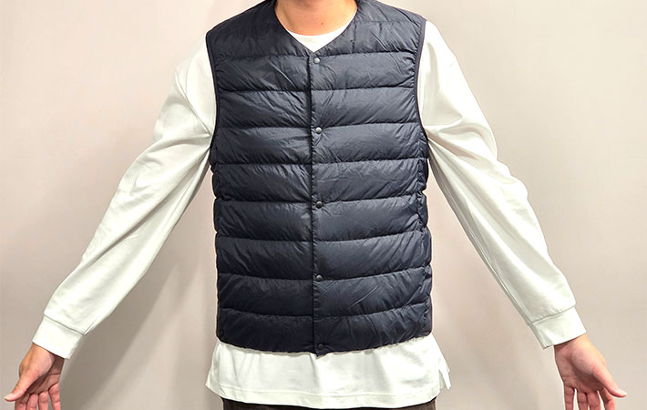筆者が手にしたのは、人気ライフスタイルブランド『無印良品』が販売している『軽量ダウンノーカラーベスト』。