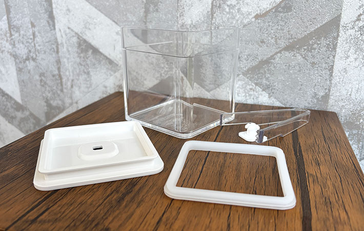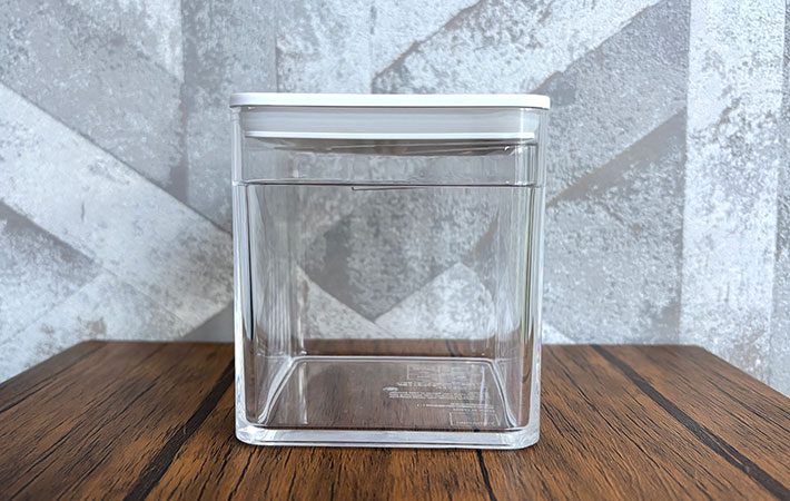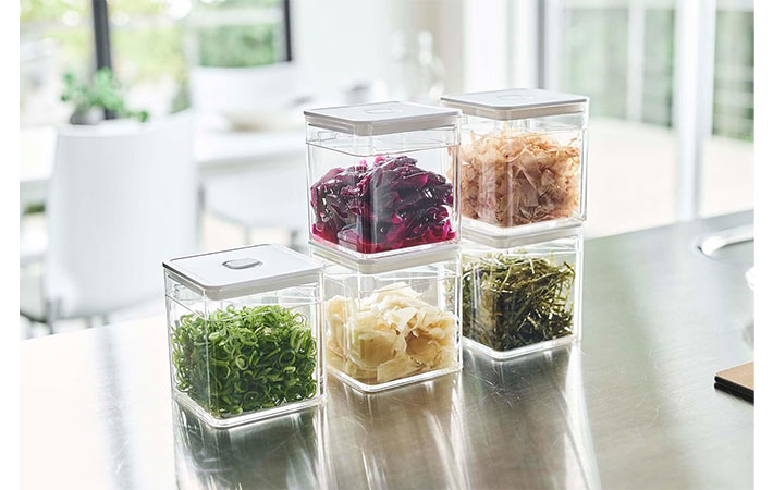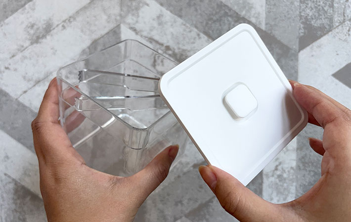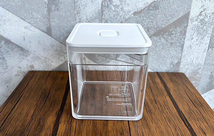 シンプルでミニマルなデザインも魅力の1つ。無駄のない四角いフォルムで、冷蔵庫や棚にスッキリと収まります。