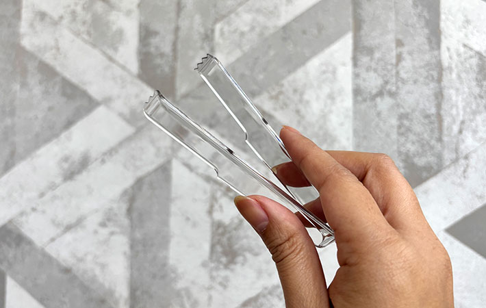 さらにトングをよく見ると、置いた時に先端が浮く仕様になっていました。ここまで考え抜かれているとは、さすが山崎実業!