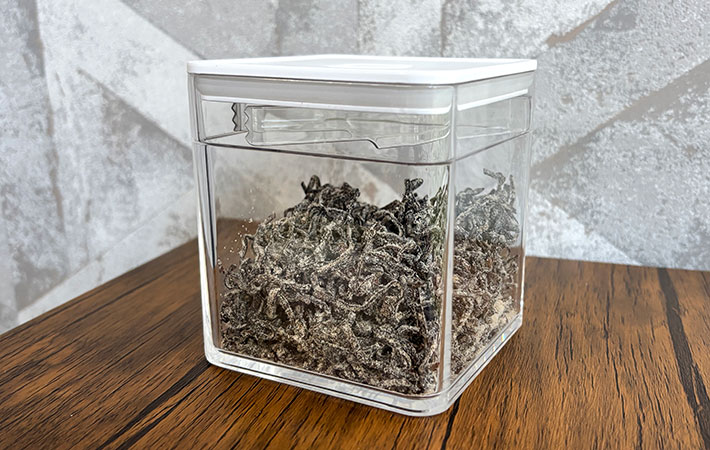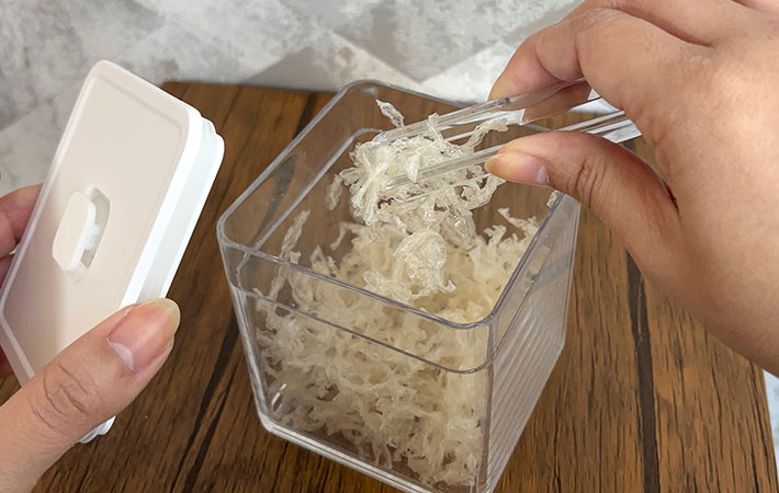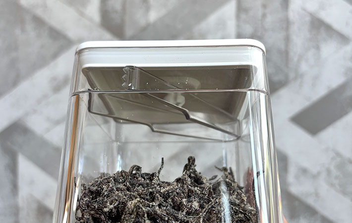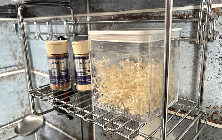料理のちょい足しによく使う乾燥ワカメや塩昆布なども、この容器に入れておけば便利。