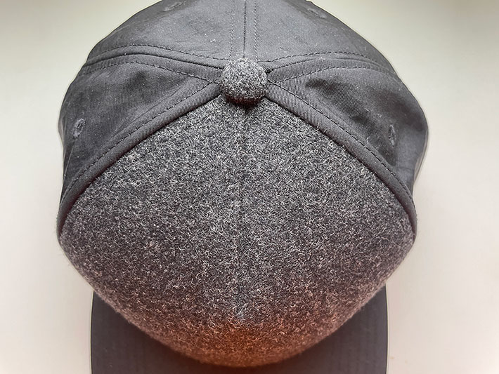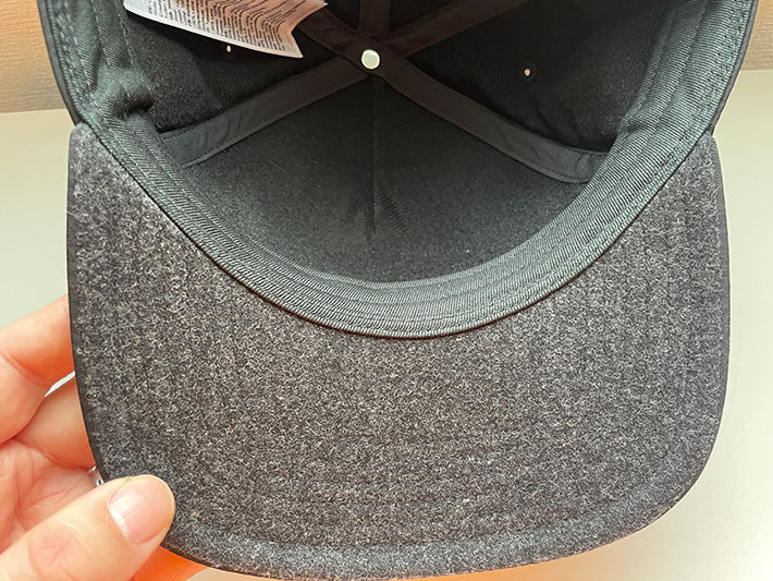 一方、前面やツバの裏側以外はナイロンやポリエステルでできており、撥水性や堅牢性なども持たせています。